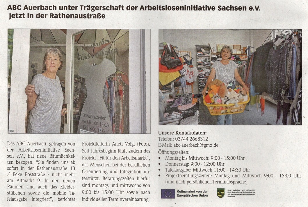ABC Auerbach unter Trägerschaft der Arbeitsloseninitiative Sachsen e.V. jetzt in der Rathenaustraße
